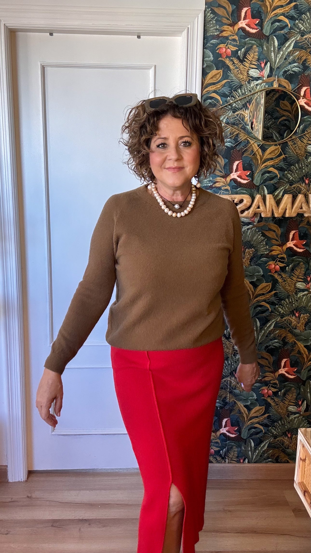 ✨ Invest in a timeless basic: A knit sweater with natural wool and a crew neck is the essential basic every woman needs. Versatile, flattering, warm, and durable, it's the piece that creates endless looks with understated elegance. It will become your favorite go-to piece for the season.