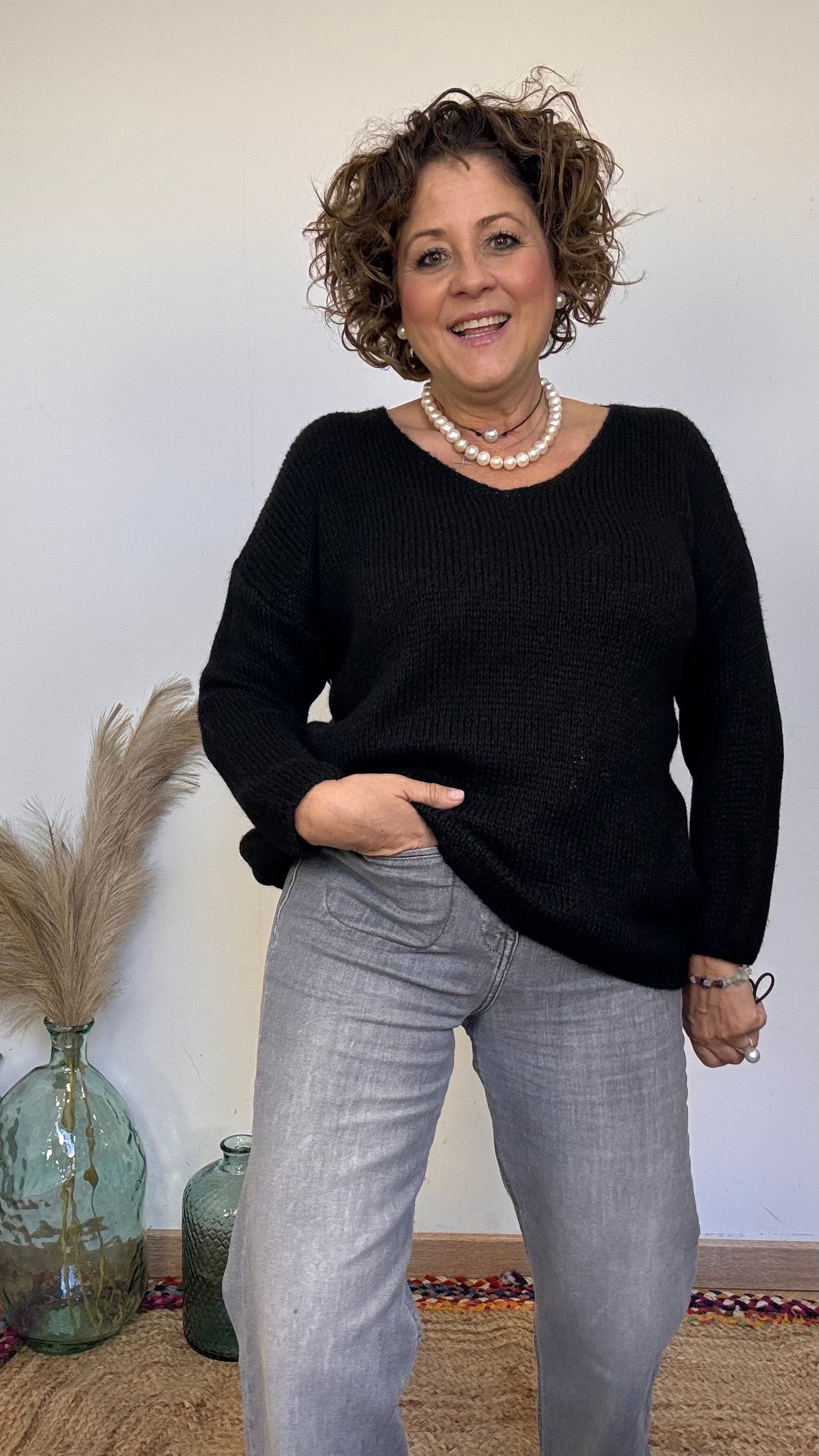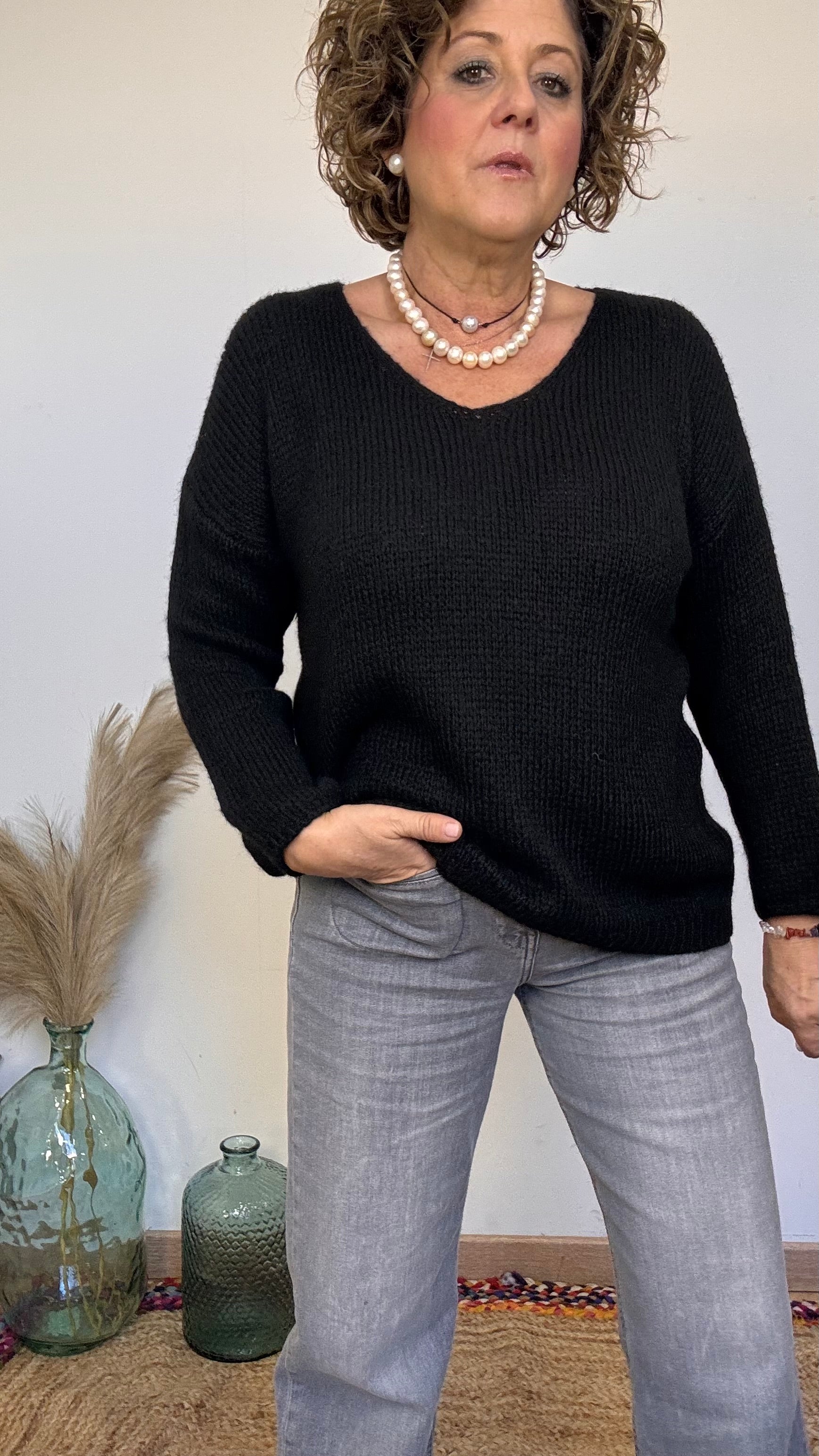 🖤 Black knit sweater with a V-neck – Because elegance starts with feeling comfortable in your own skin.