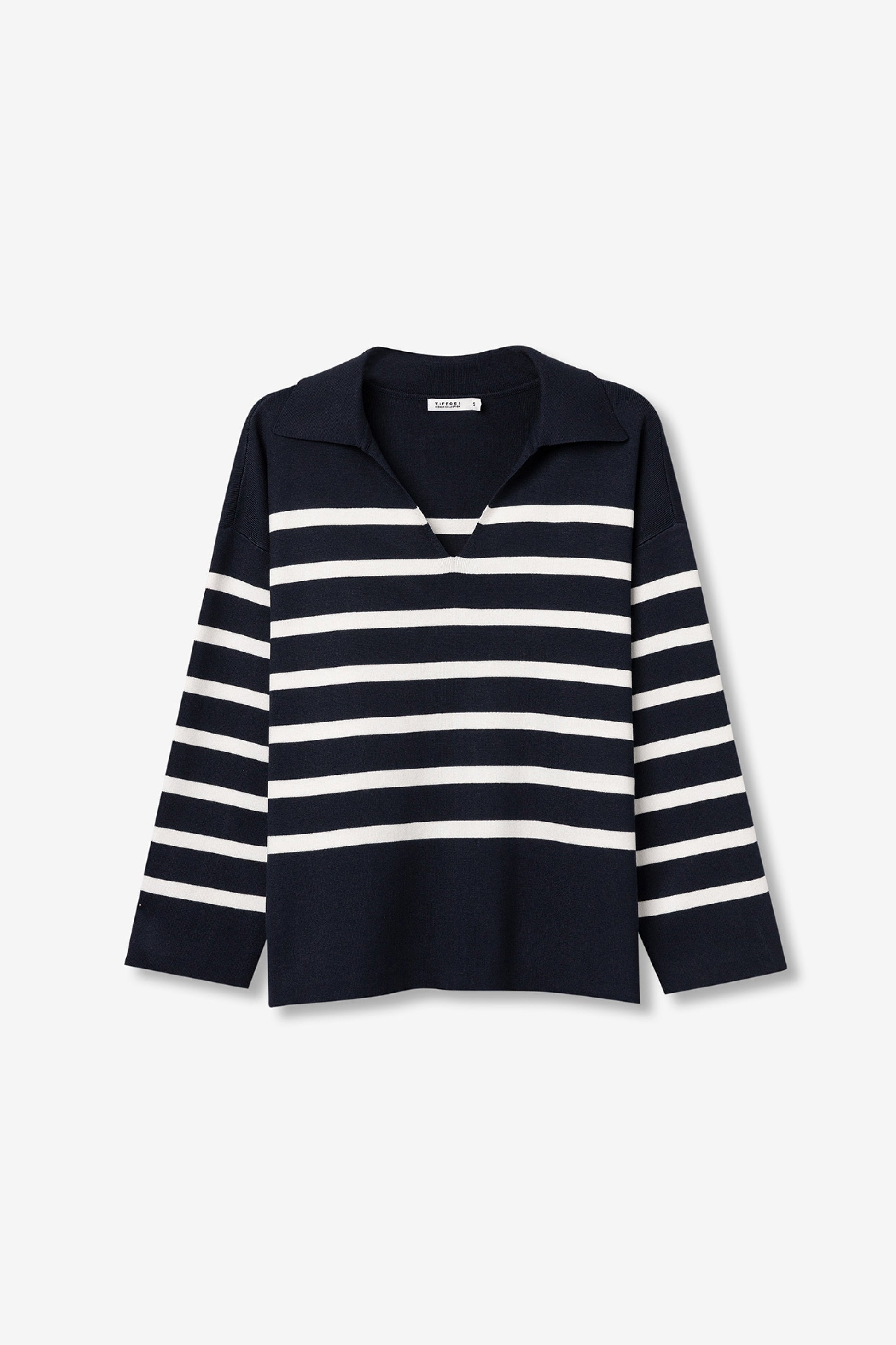 ⚓ White and blue sailor sweater – Relaxed elegance with a Mediterranean flair.