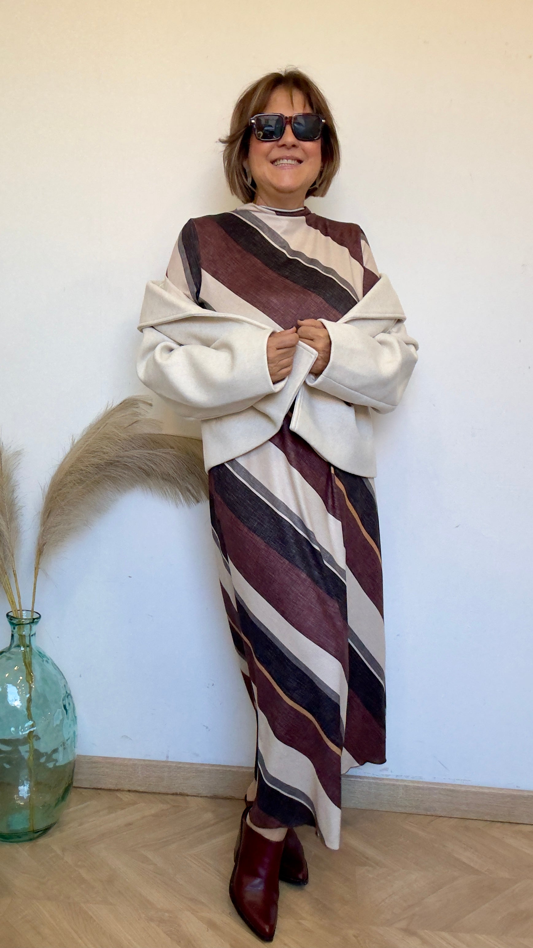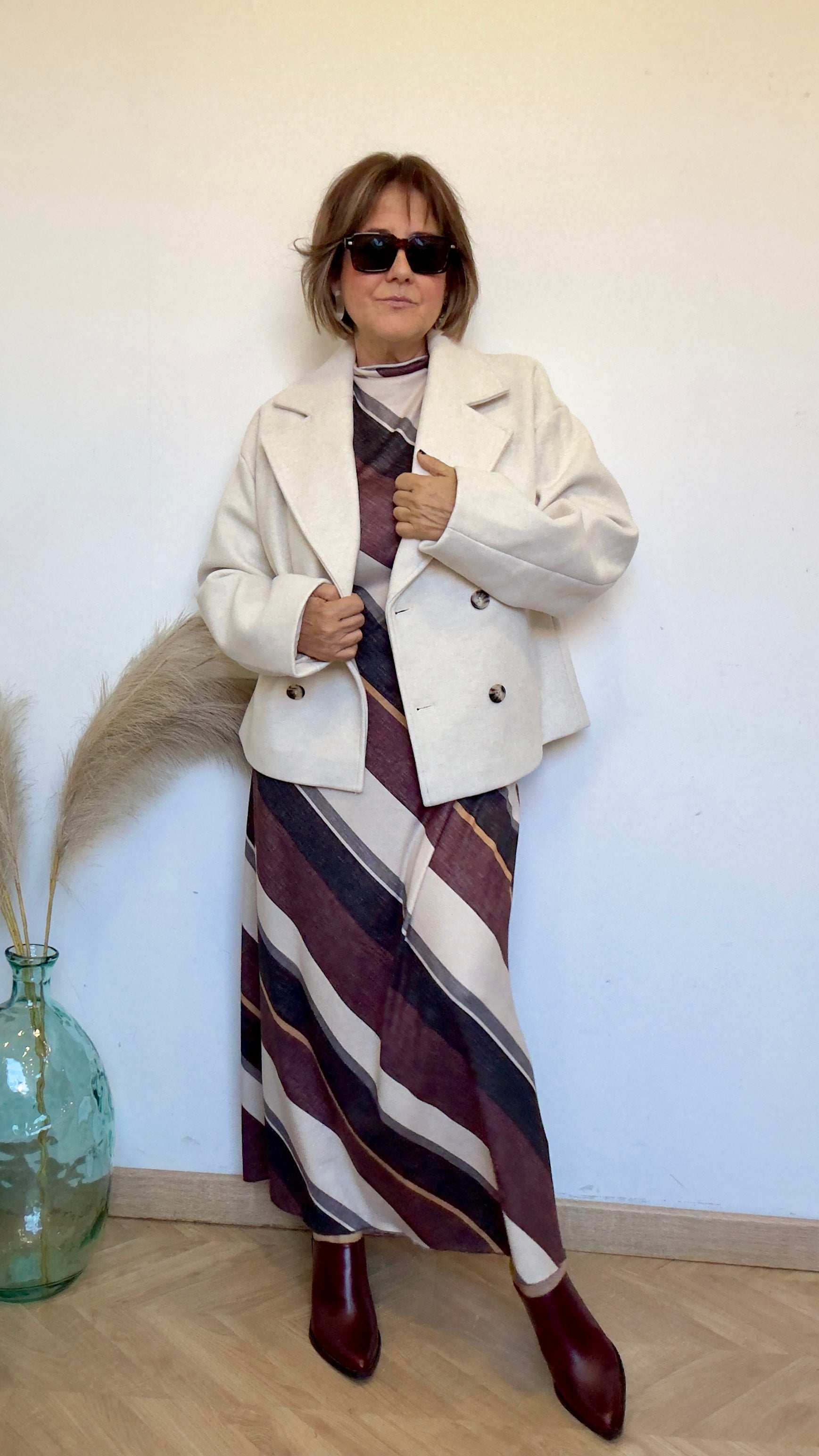 With ankle boots and maxi earrings: perfect for dinners, meetings or events without sacrificing comfort.