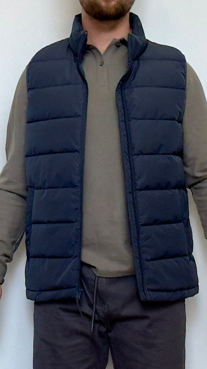 Chaqueta tipo chaleco azul marino acolchado.