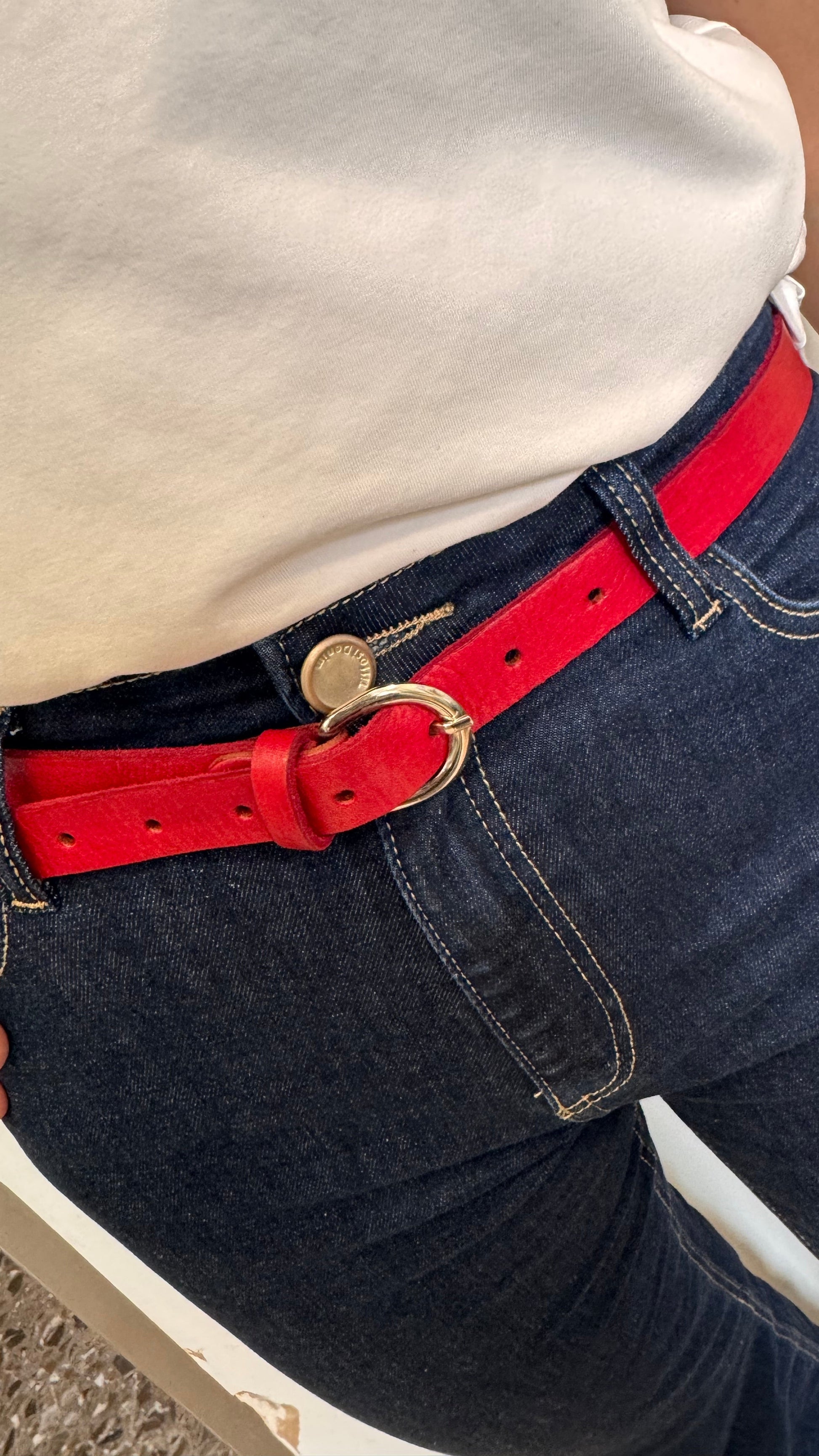 Cinturón rojo de piel.