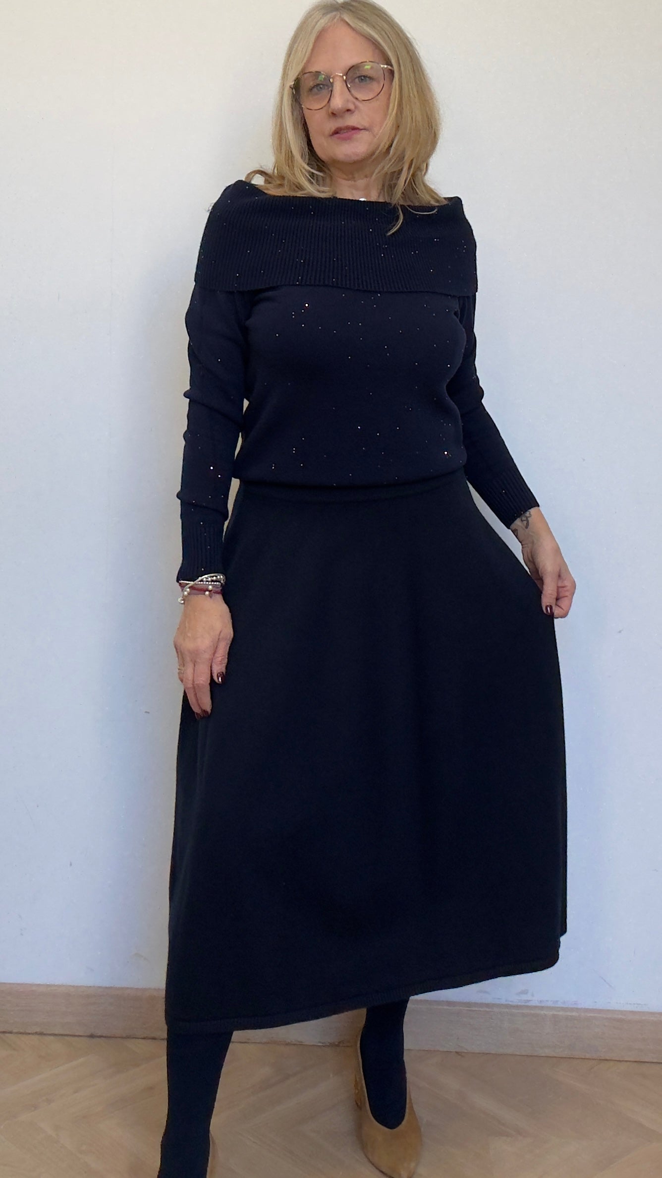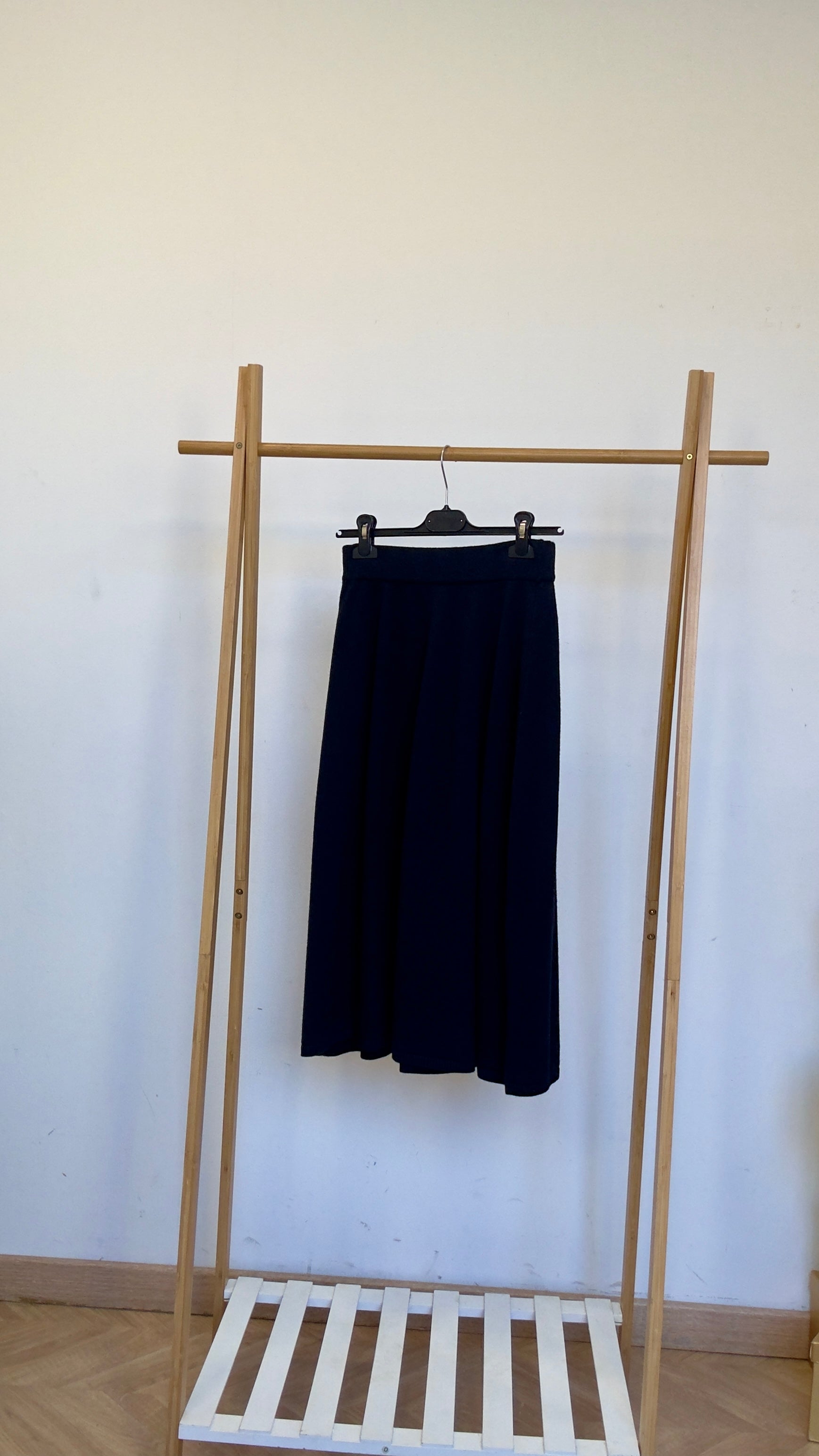 Falda de punto en evasé , con cintura elástica.