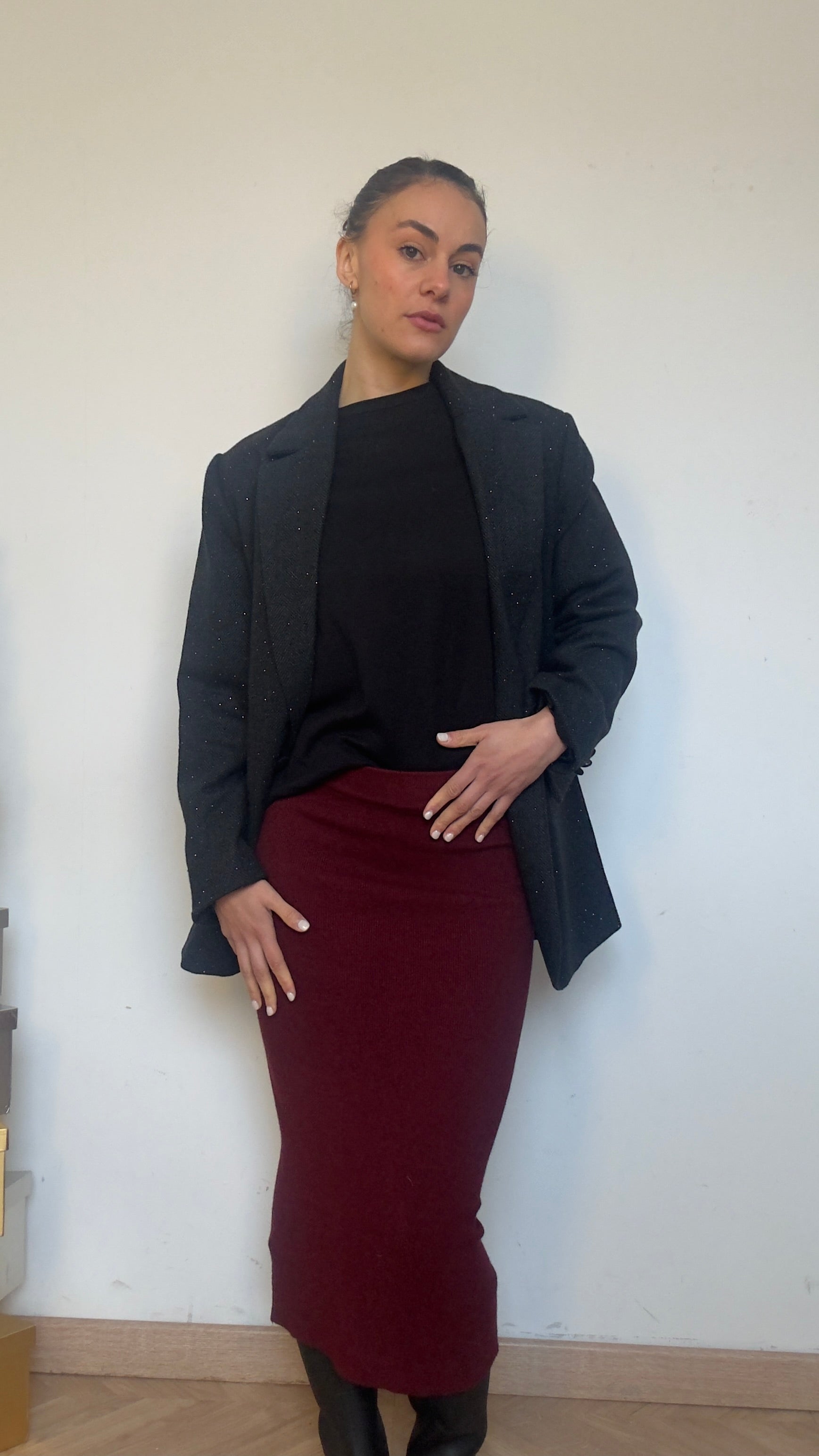 Falda de punto entubada y elástica, con goma en la cintura.