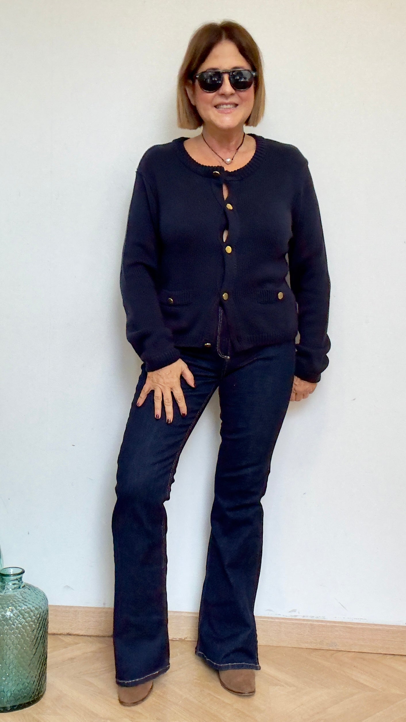 Pantalón vaquero elástico azul oscuro Zoe de Tiffosi con camal ancho.