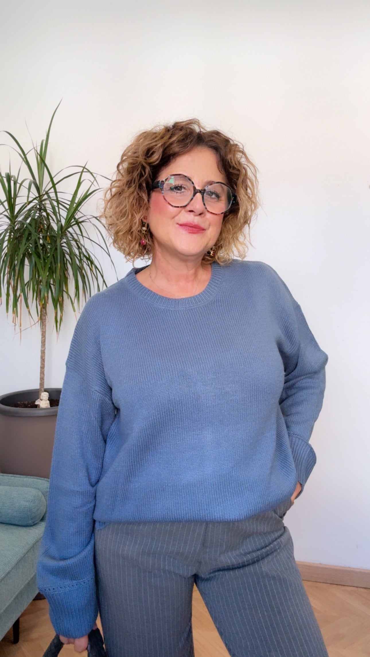 Suéter básico de punto suave con cuello redondo