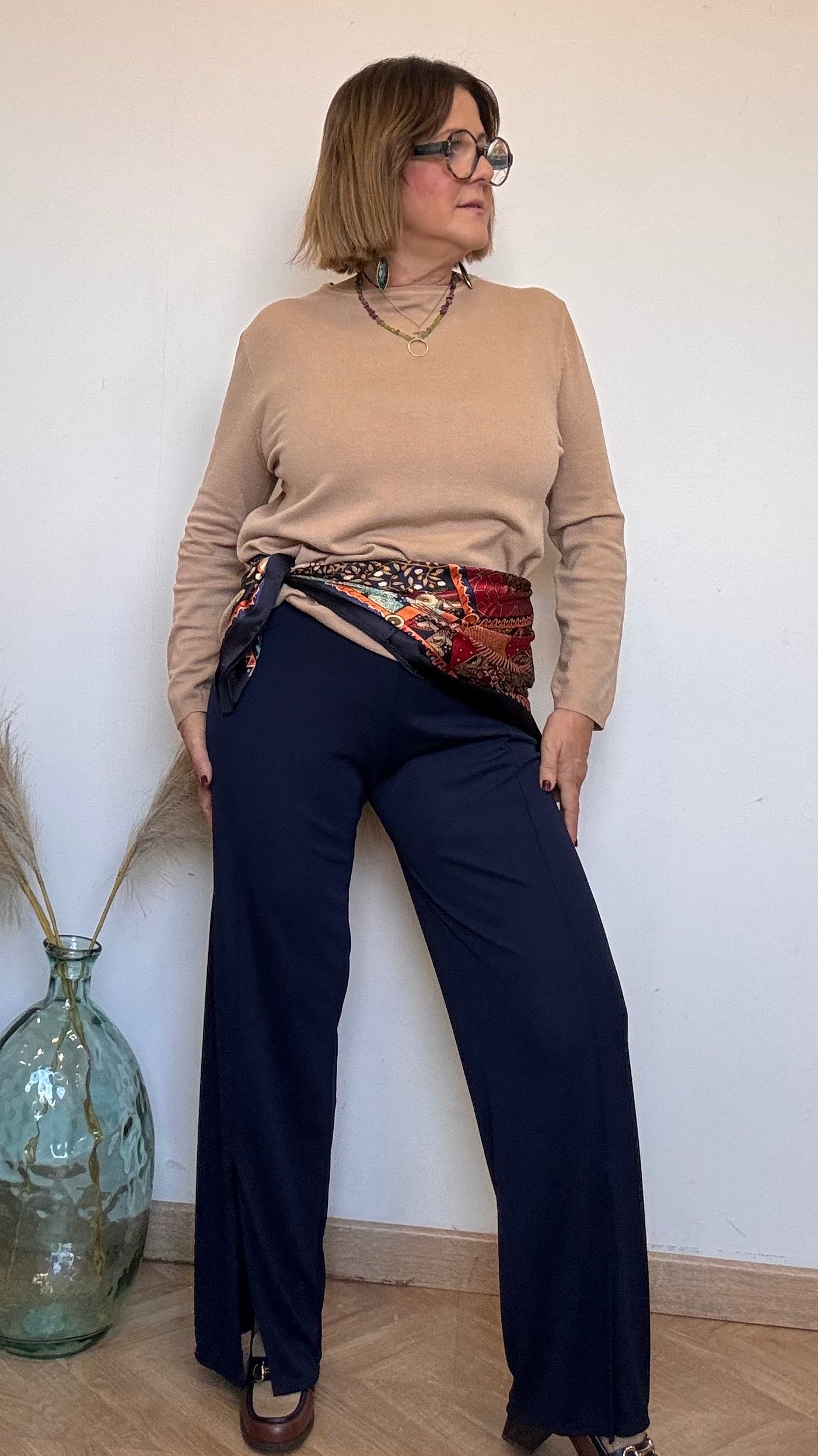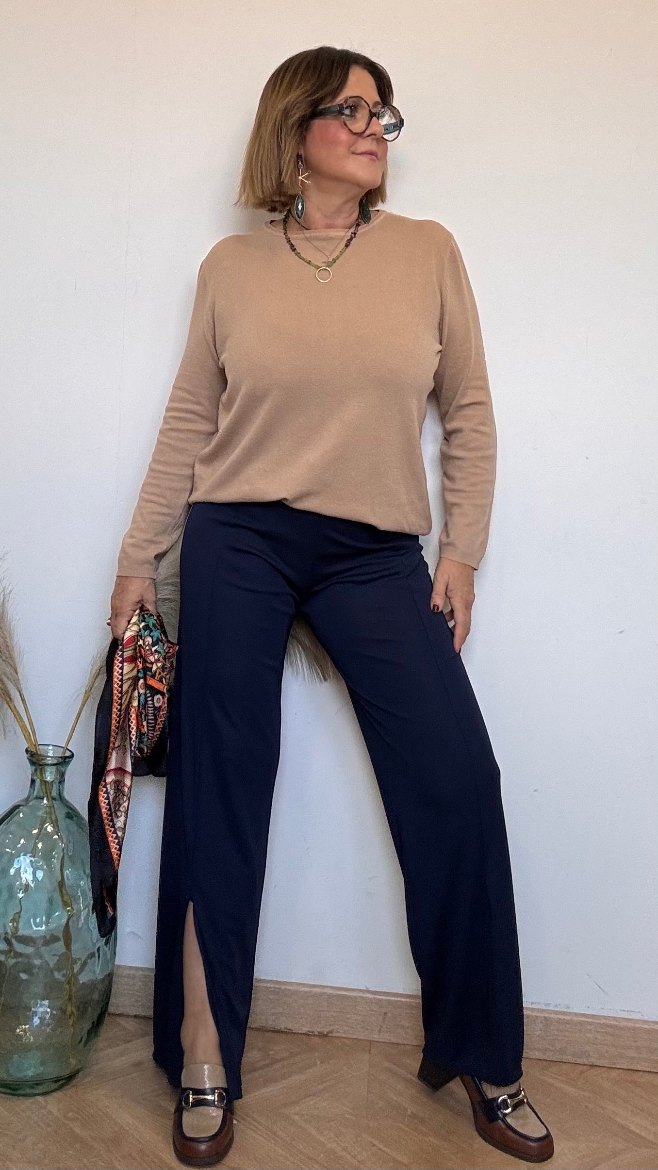Suéter básico en talla única con cuello redondo , suave y fino .